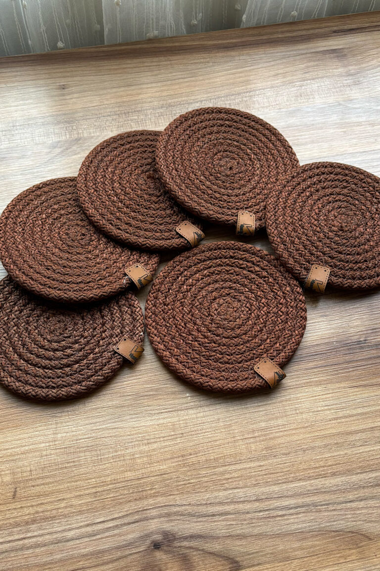 Hasır Tress 6’lı Bardak Altlığı, Çay Kahve Fincan Kupa Mum Altlığı Dekoratif Supla 12 Cm