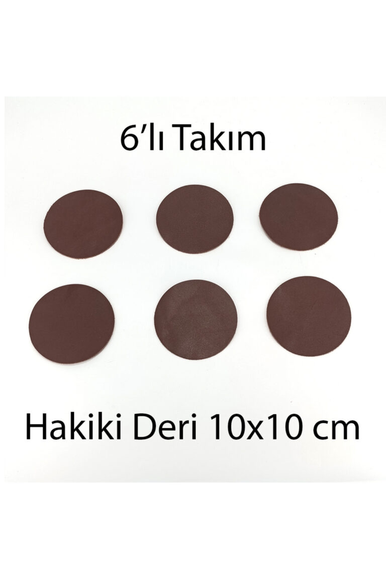 Hakiki Deri Yuvarlak Bardak Altlığı 6lı 10×10 cm