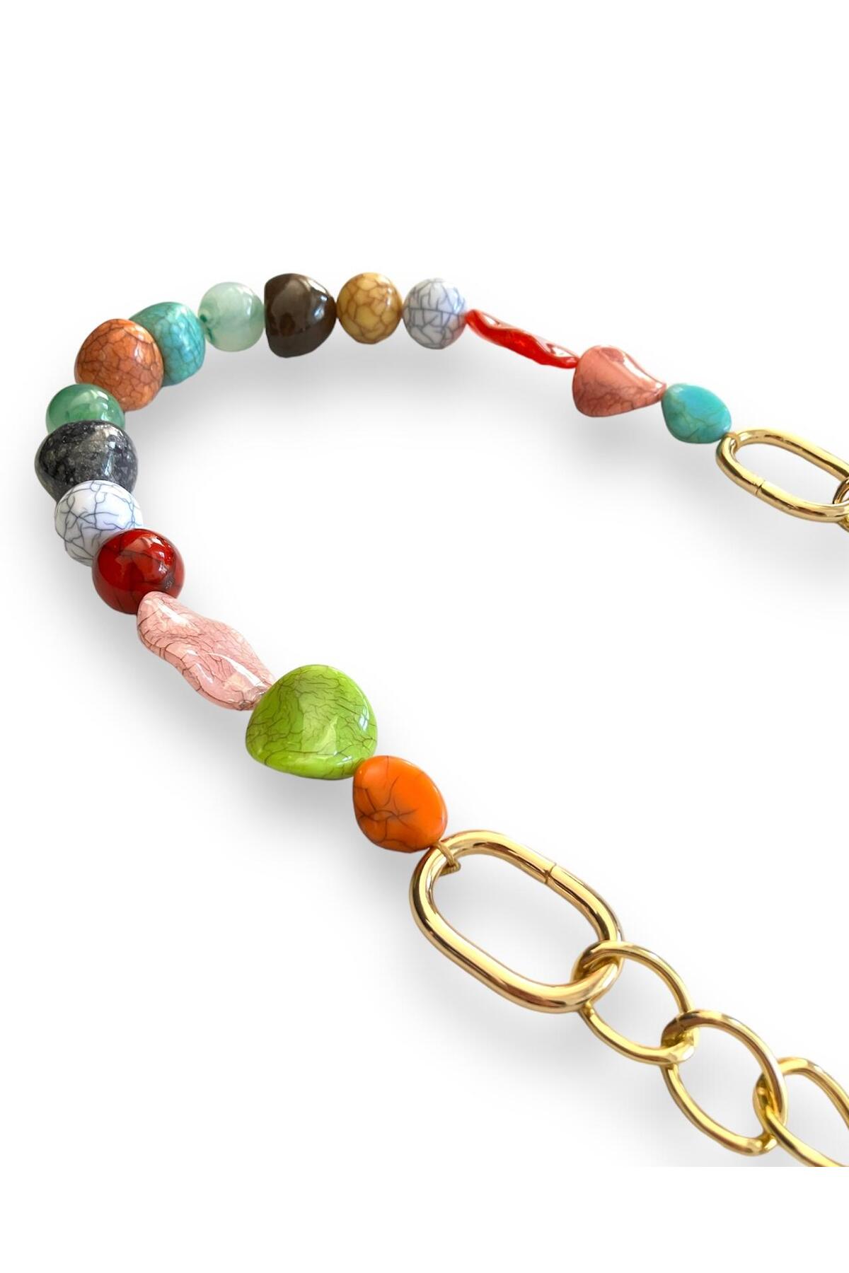 Akrilik Çanta Sapı (Zincir ve Yaylı Halka, 75 CM)- Çok Renkli