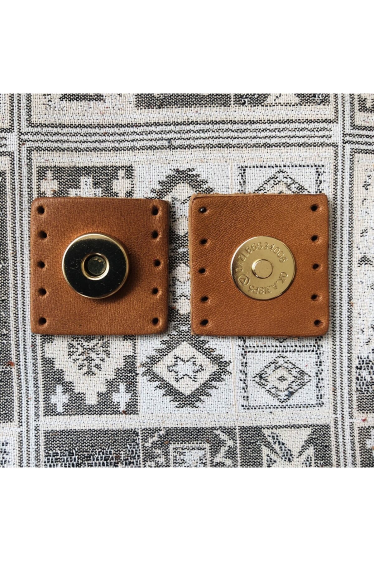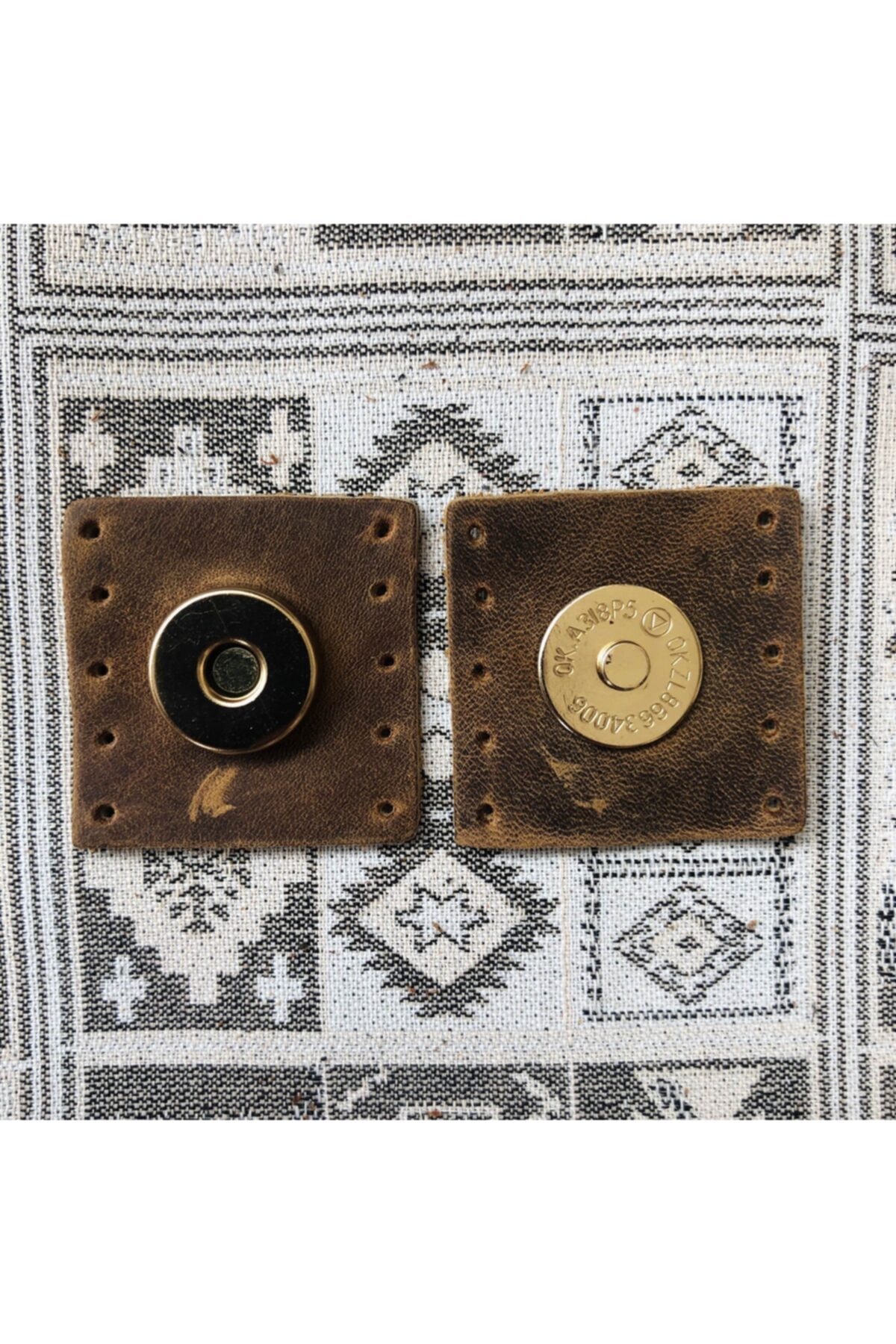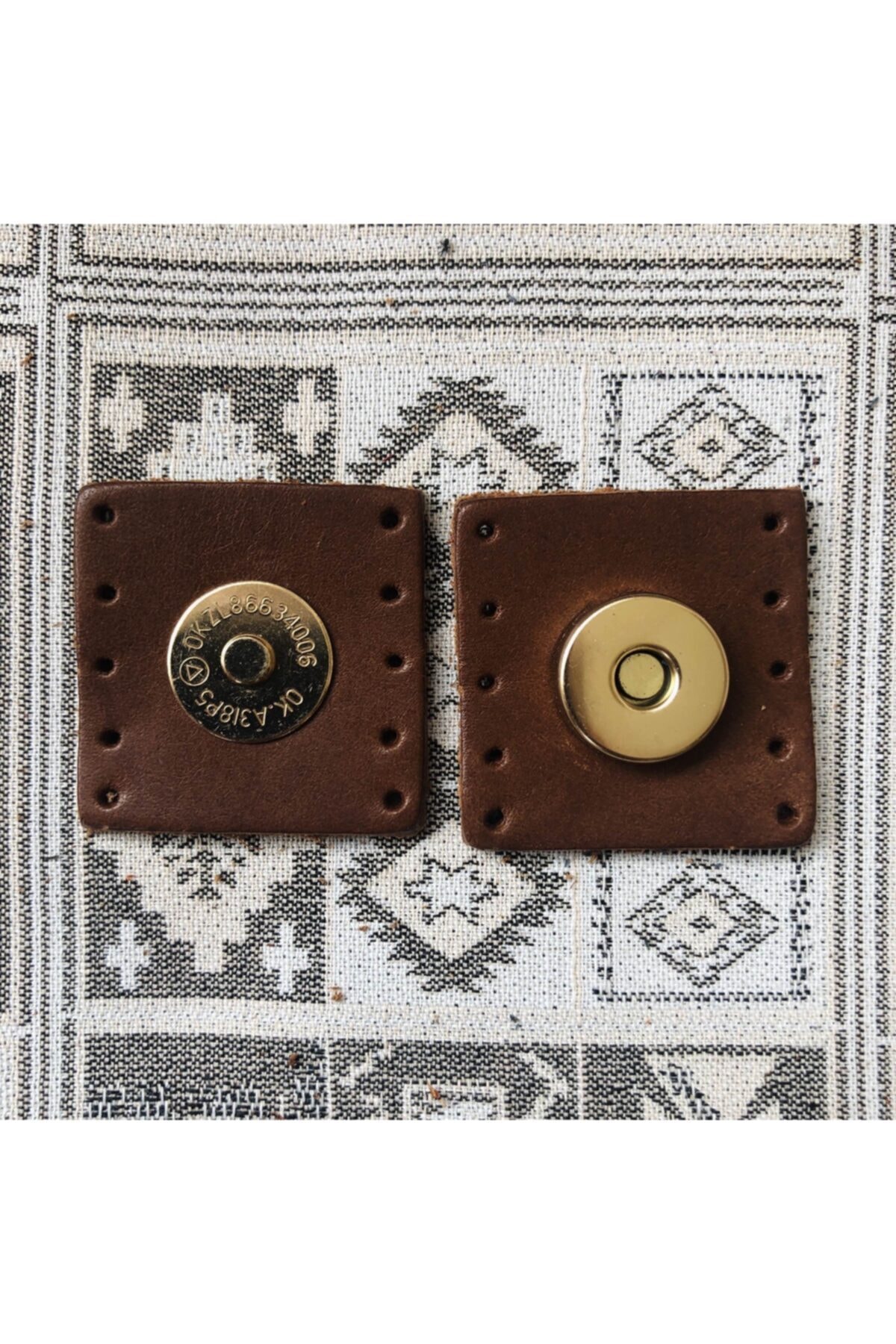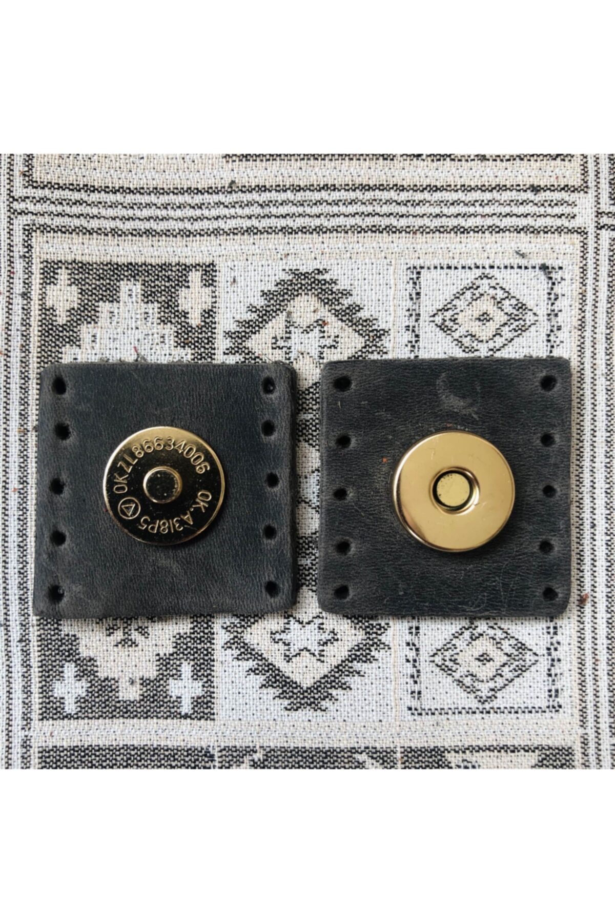 Altın Mıknatıslı Kare Hakiki Deri Çanta Çıtçıtı