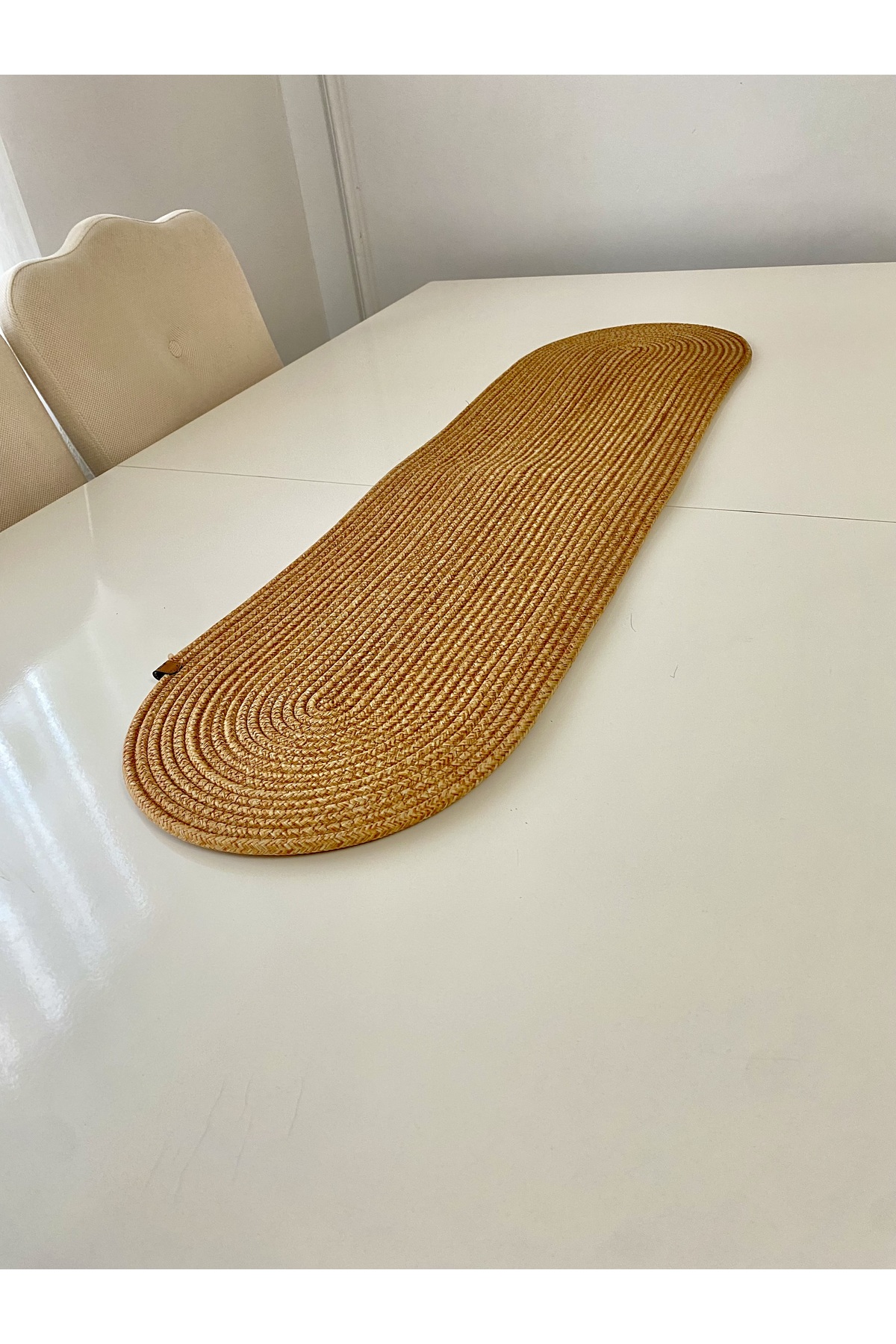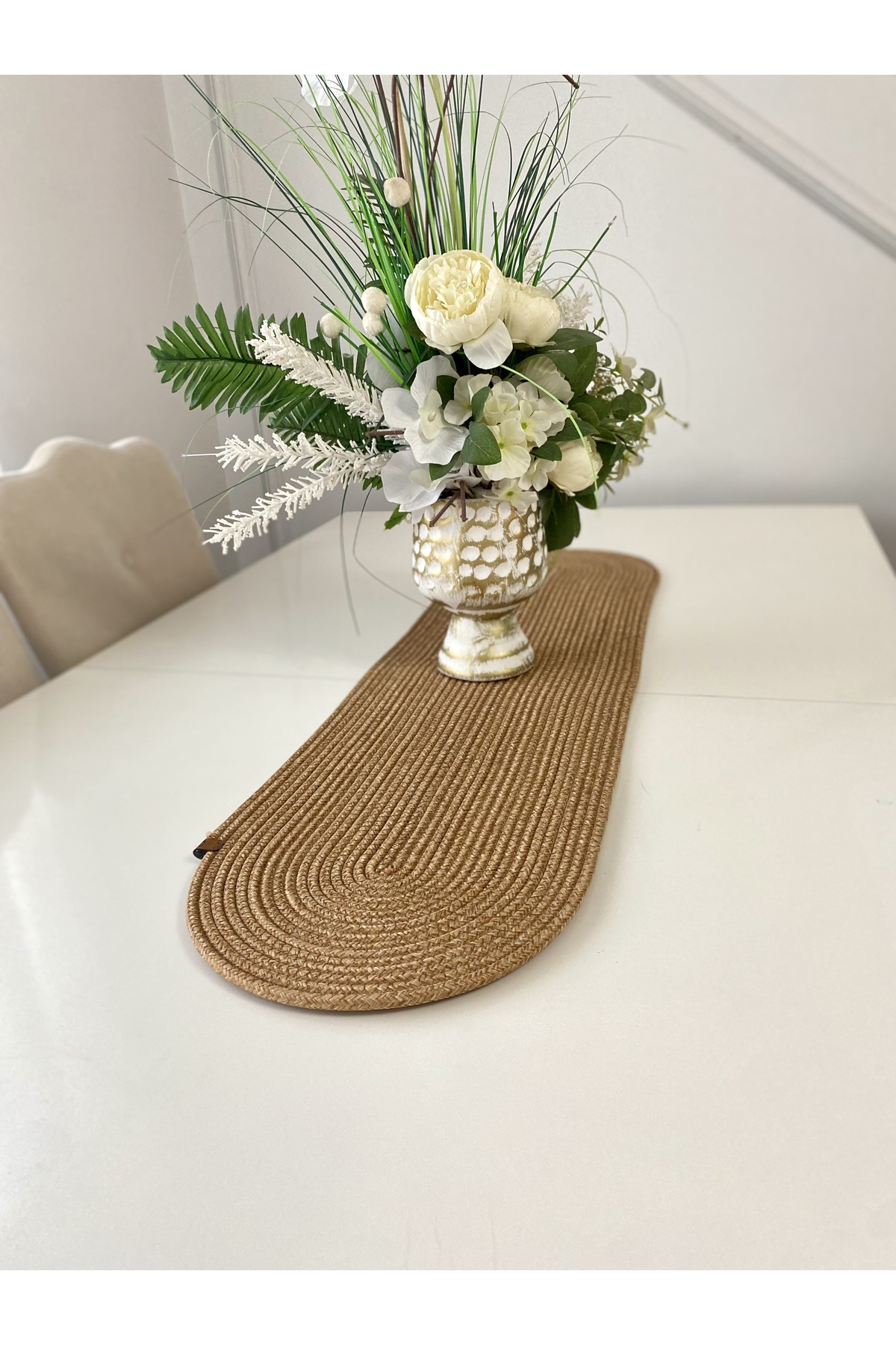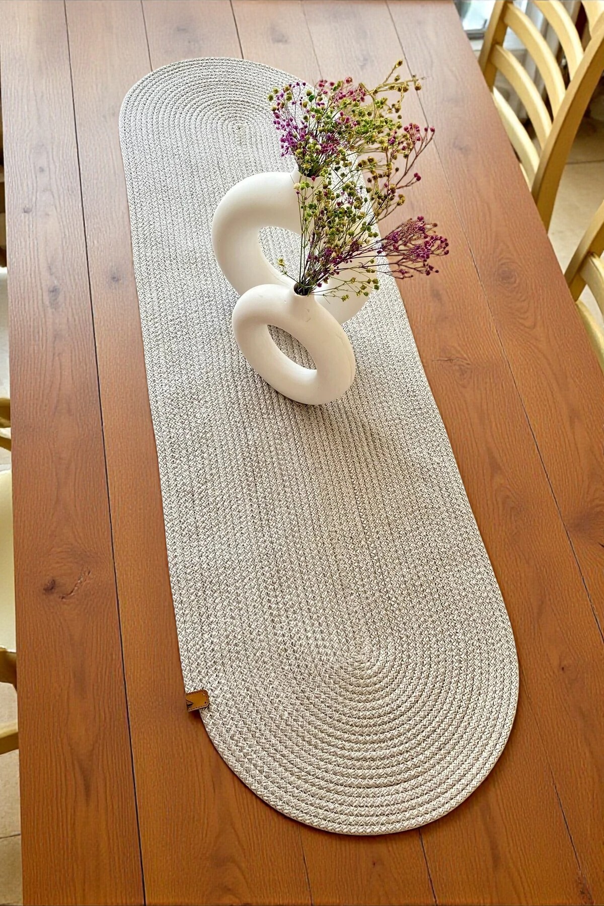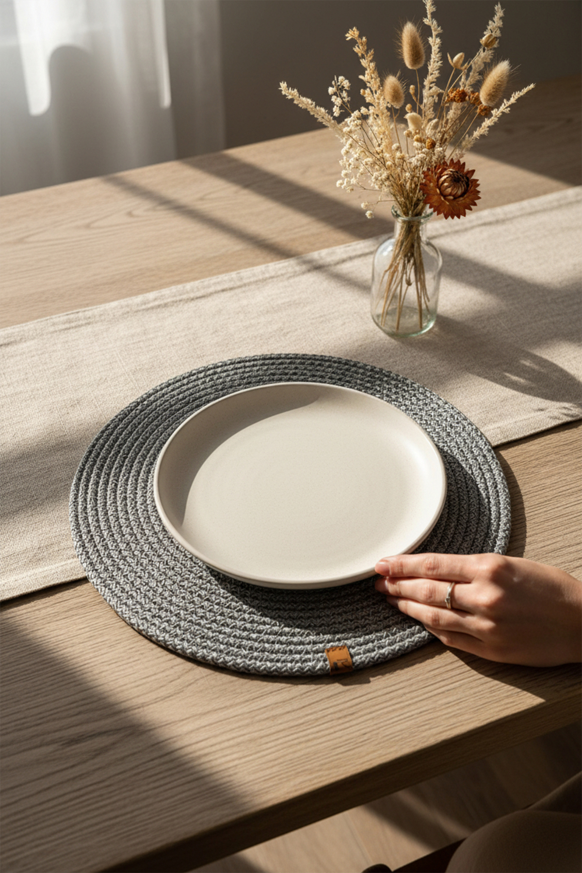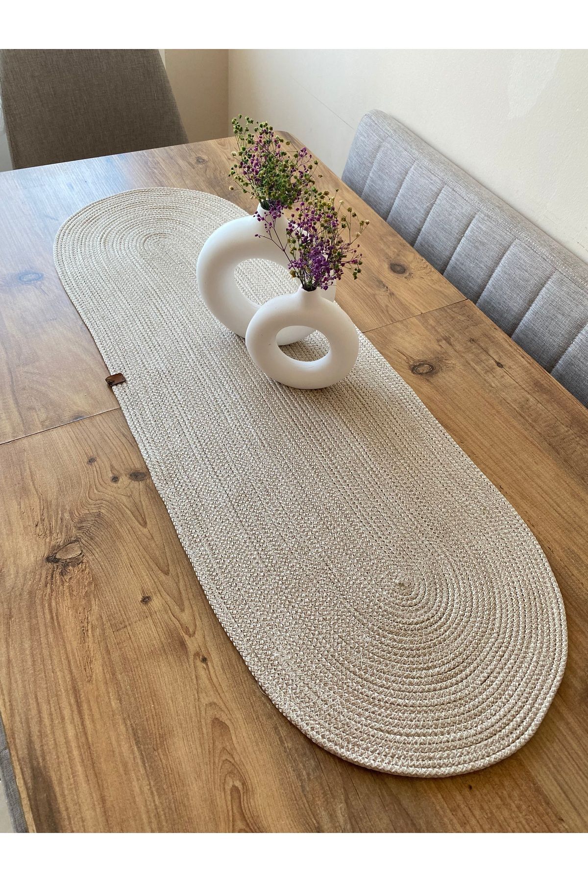 - Jüt materyali ile doğal bir görünüm sunar ve sofralarınıza sıcak bir dokunuş katar