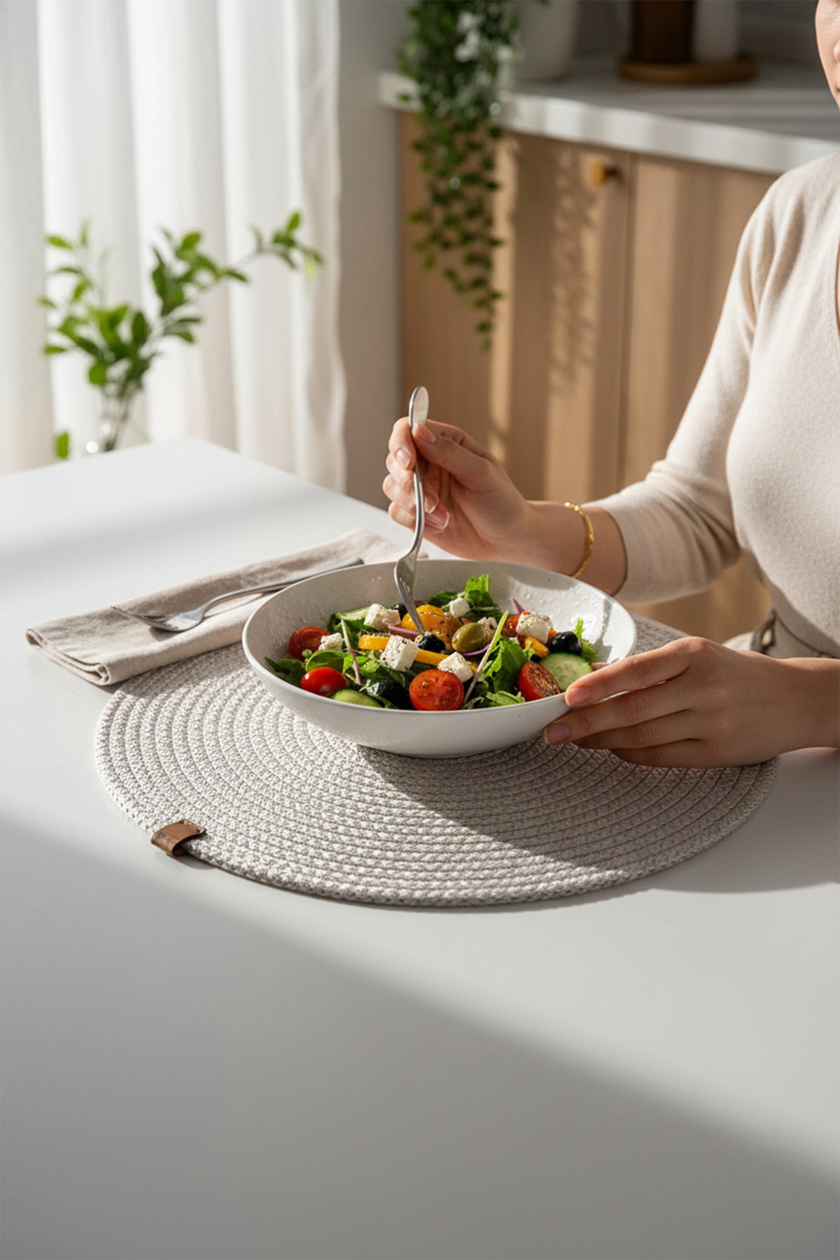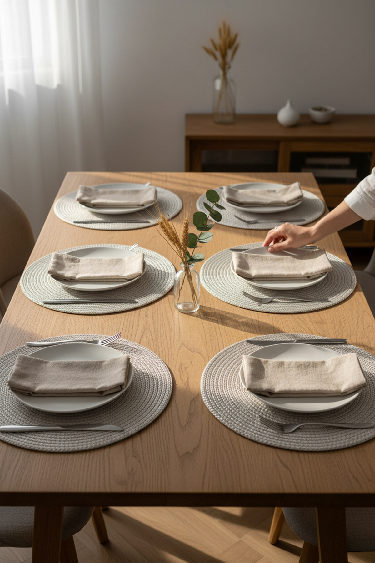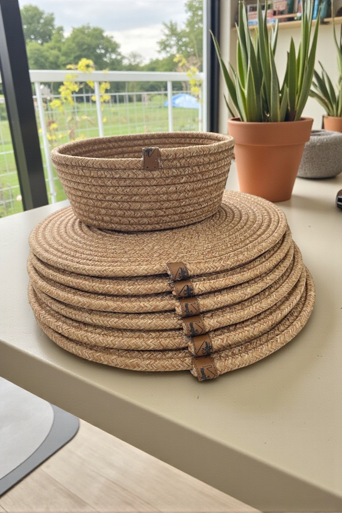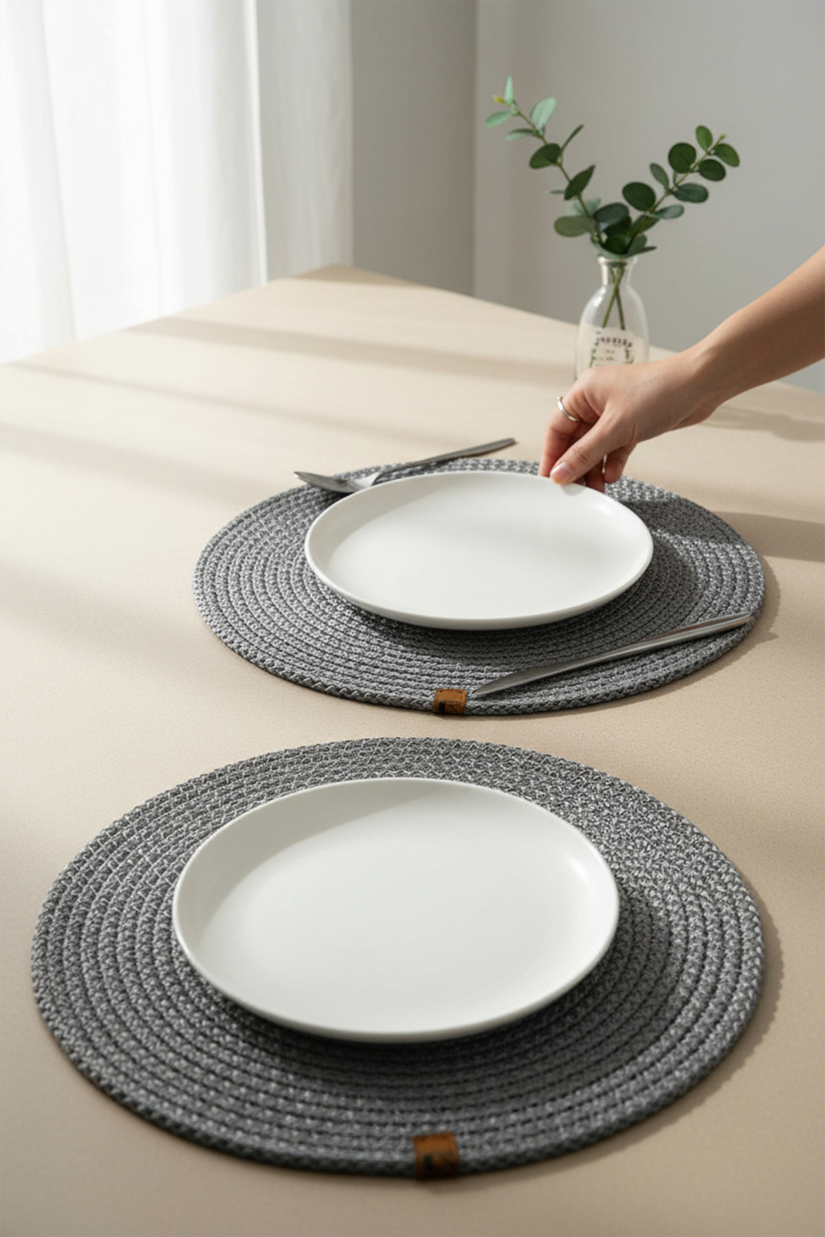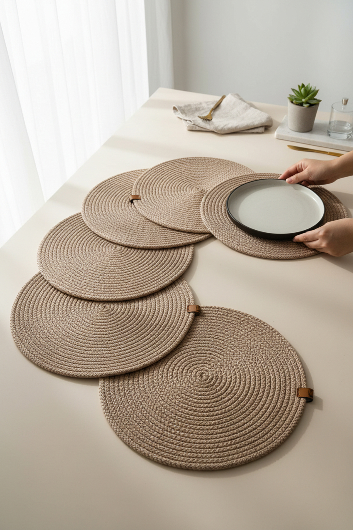- Jüt materyali ile doğal bir görünüm sunar ve sofralarınıza sıcak bir dokunuş katar