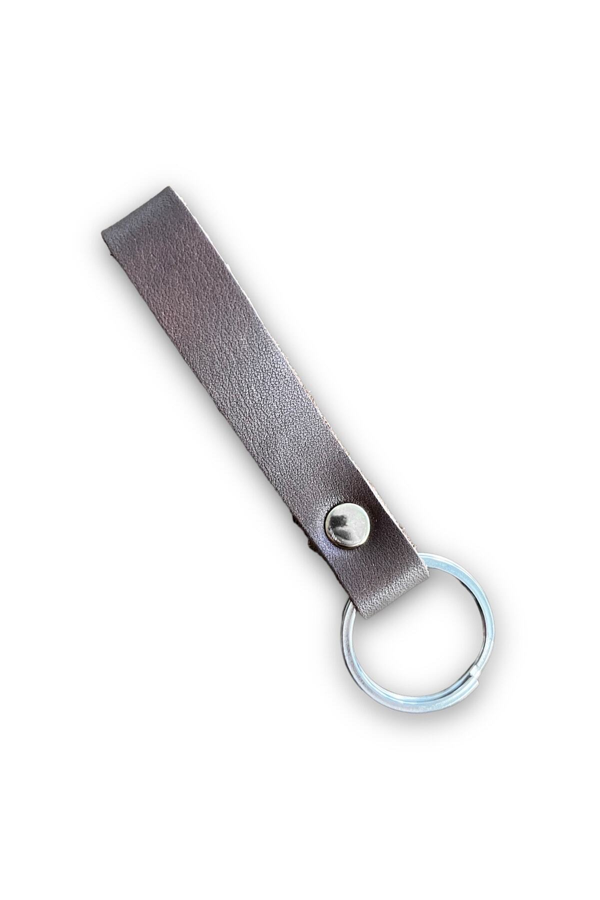 Hakiki Deri Anahtarlık – Gümüş Aksesuar – Koyu Kahve