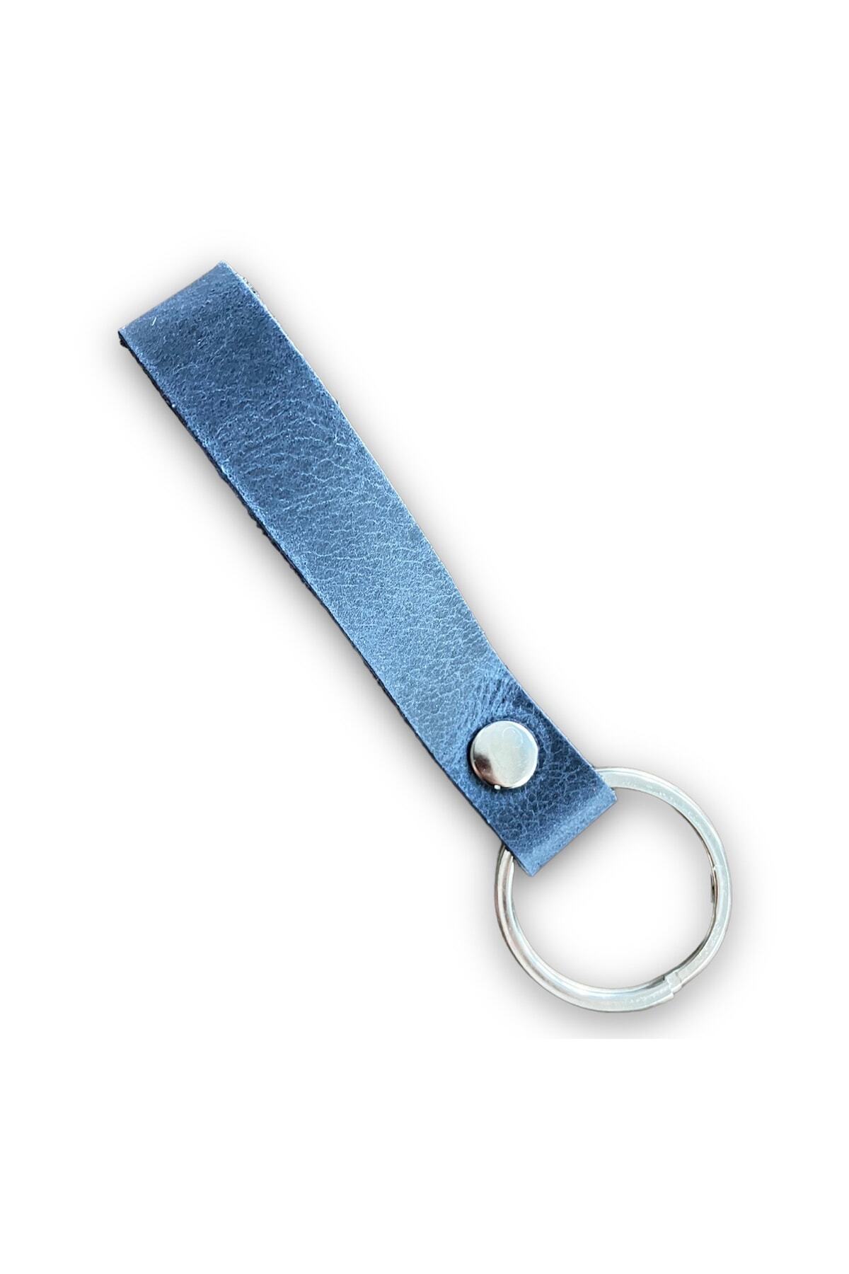 Hakiki Deri Anahtarlık – Gümüş Aksesuar – Uzay Mavisi