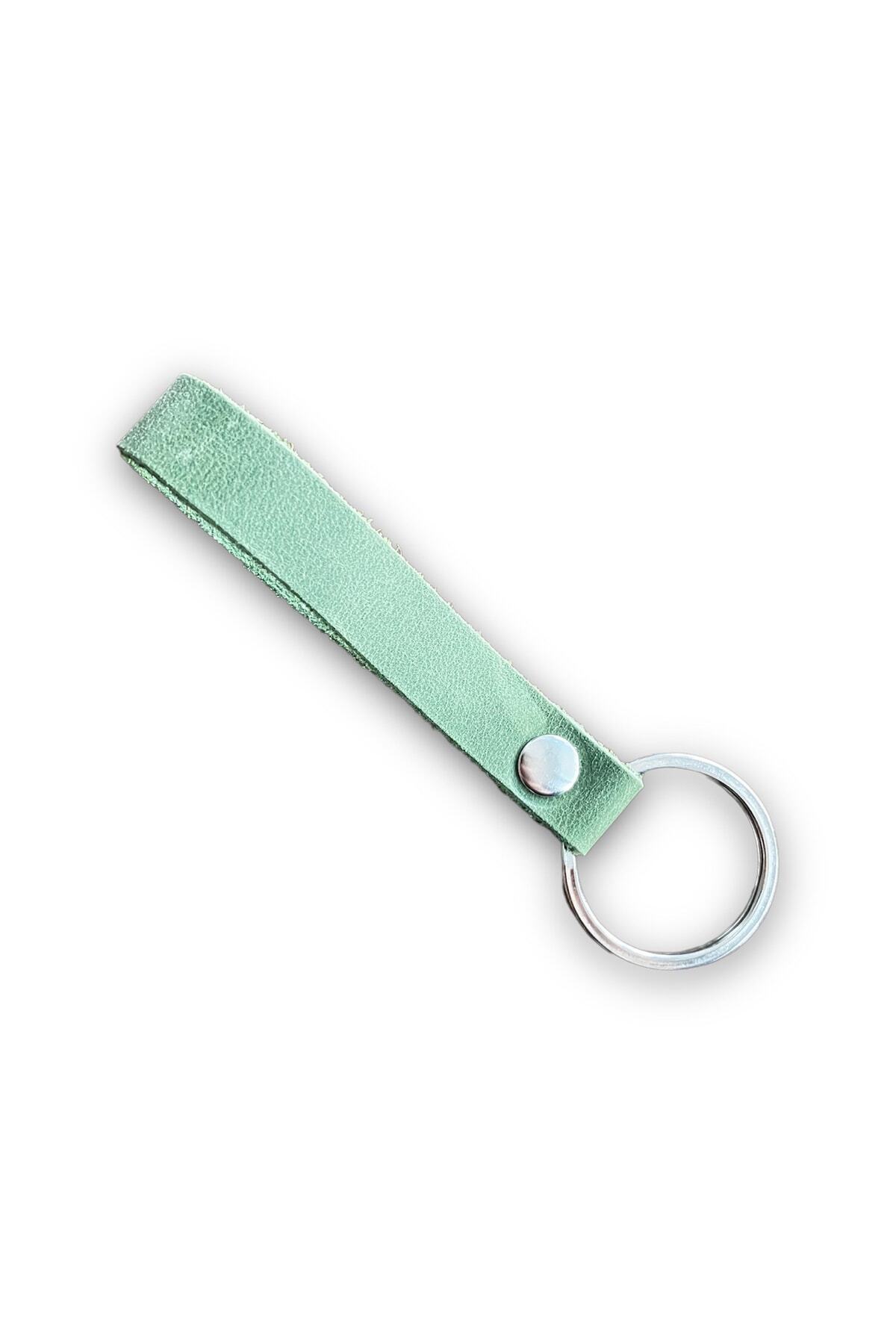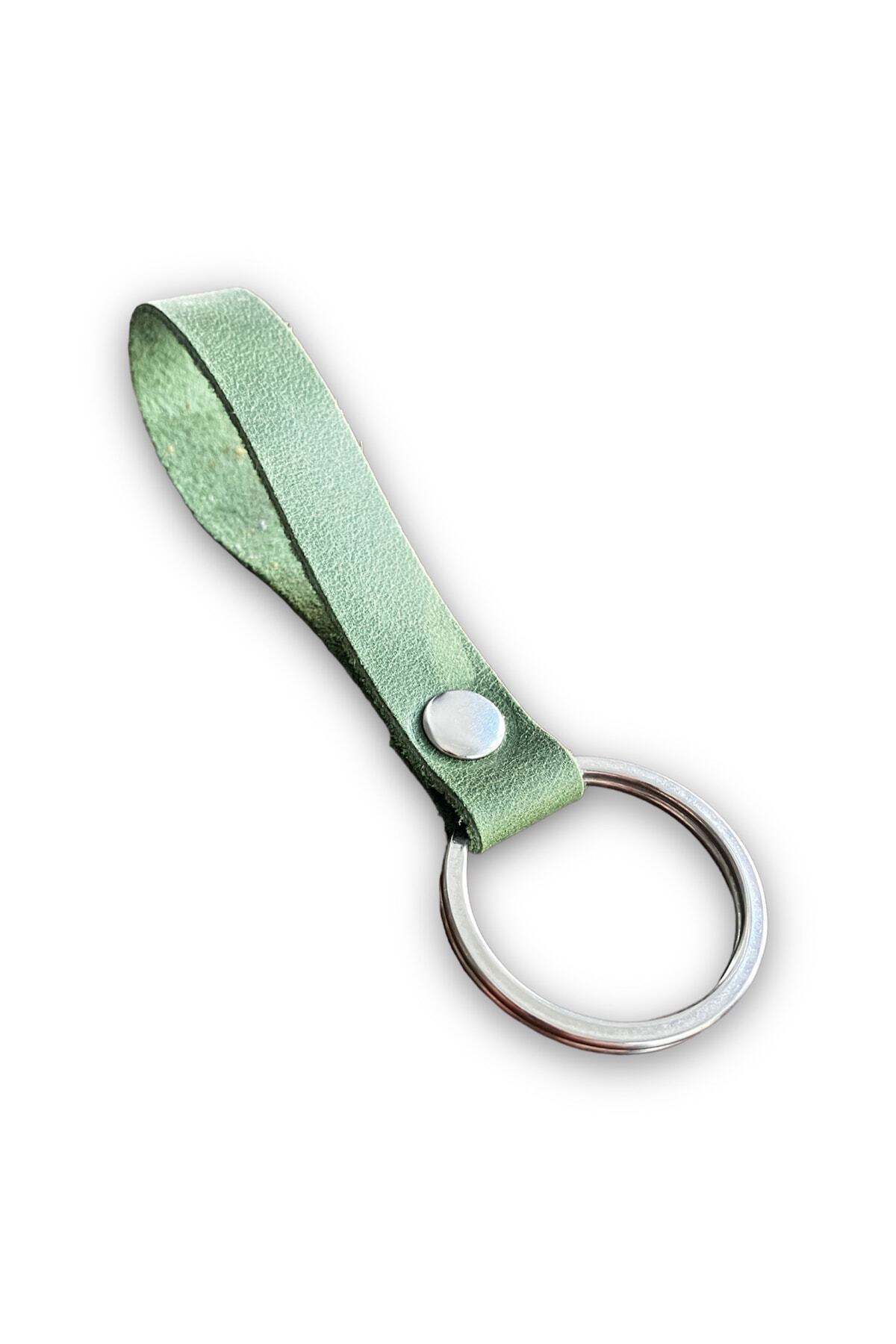 Hakiki Deri Anahtarlık – Gümüş Aksesuar – Yağ Yeşili