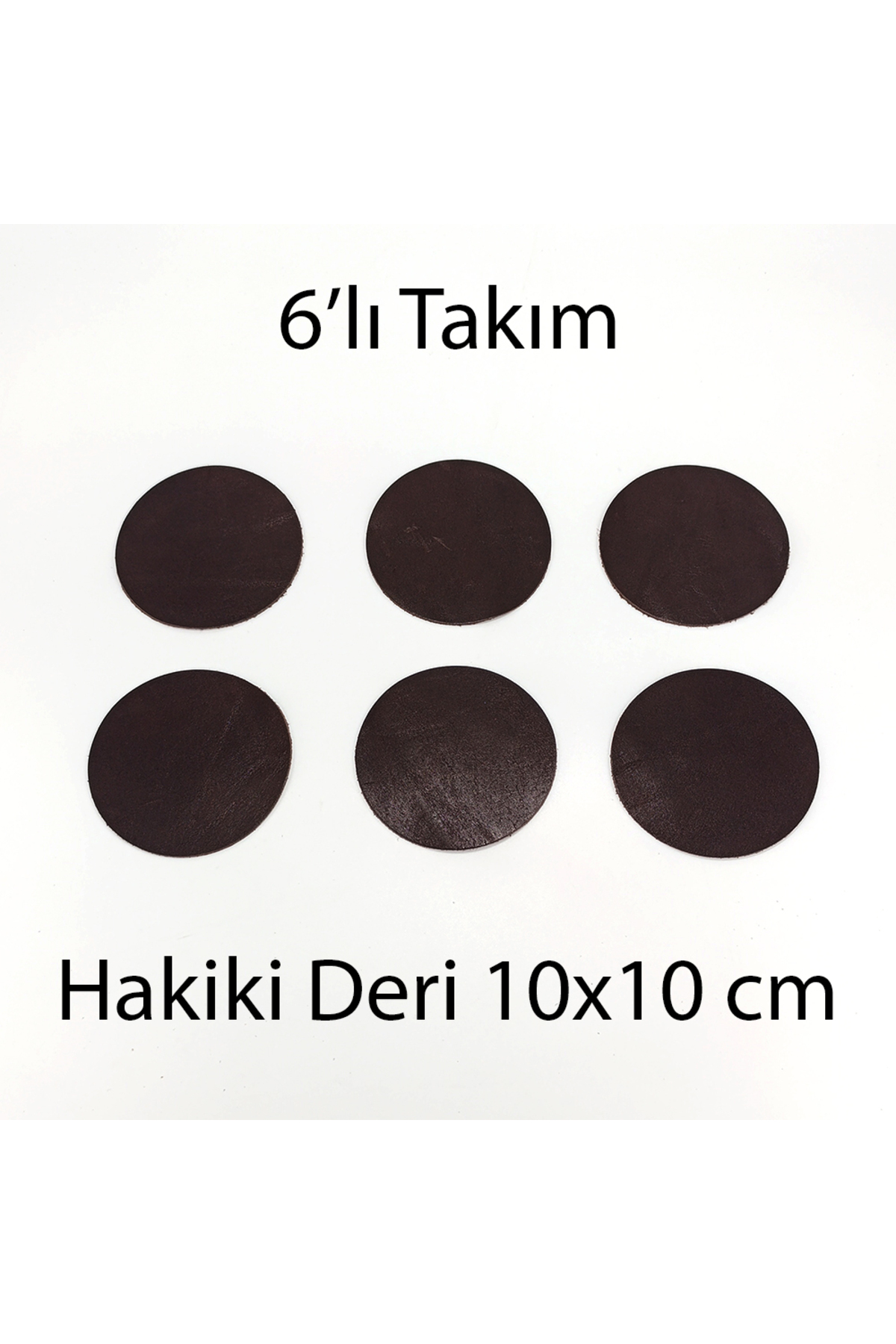 Hakiki Deri Yuvarlak Bardak Altlığı 6lı 10×10 cm
