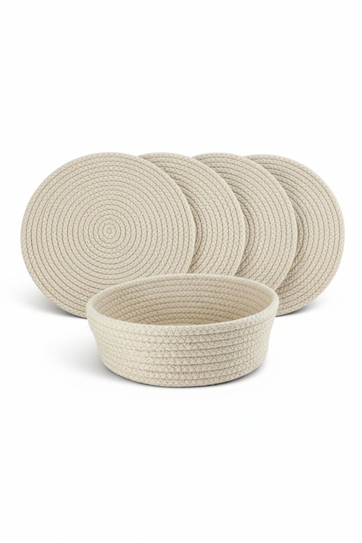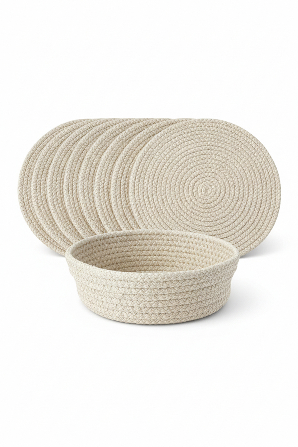 - Krem 7 Parça Sunum Seti (6’lı Tabak Altlığı + Ekmek Sepeti) ile sofralarınıza zarif, sıcak ve modern bir görünüm kazandırın
