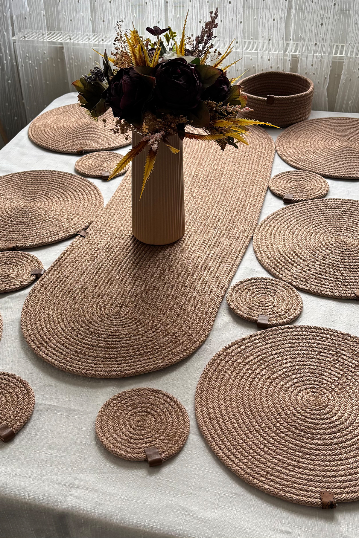 • Doğal jüt materyali ile üretilen bu set, hem dayanıklı hem de çevre dostudur